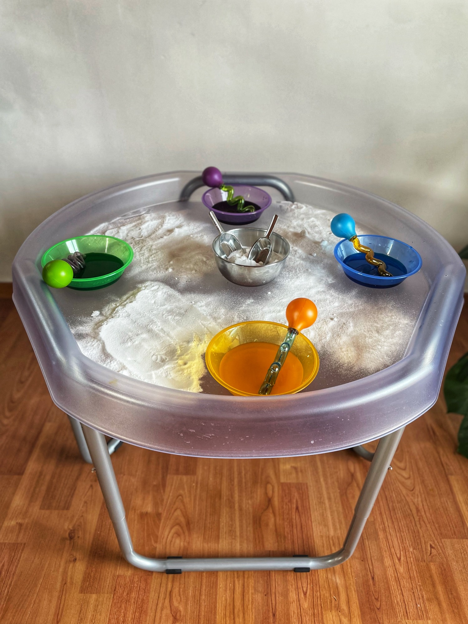 Materiales naturales, herramientas de madera para el juego con arena y agua, botellas sensoriales, bandejas de exploración....